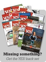 I read last month’s issue of YES! With relish and It helped me to understand what’s going on in the world. I don’t know why I didn’t come across this powerful and practical magazine before last month. YES! writers are well-versed; they tackle the nitty-gritty of today’s very important topics, those that affect all of us, and inform us about issues that are not necessarily aired in quite the same way in the media. YES! readers are given a no nonsense account of how the important issues work, or don’t, on behalf of we the people, and the many ways in which those things that pertain to us are changing due to the creative endeavors of citizens the world over. Knowing what’s actually happening, as opposed to thinking we know, lends power to daily living. www.yesmagazine.org